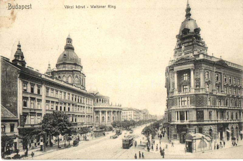 Budapest V. Váci körút, villamos, Grünwald Lipót üzlete