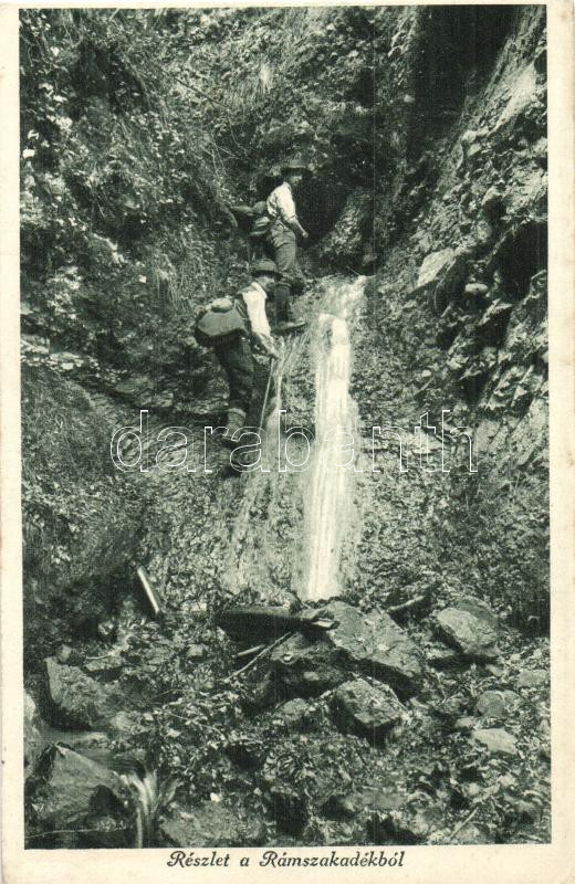 Dömös, Rámszakadék, vízesés, túrázók, a Magyar Turista Egyesület kiadá...