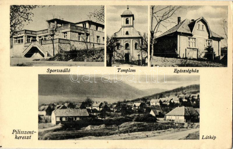 Pilisszentkereszt, Sportszálló, egészségház, templom, hátoldalán Szabó...