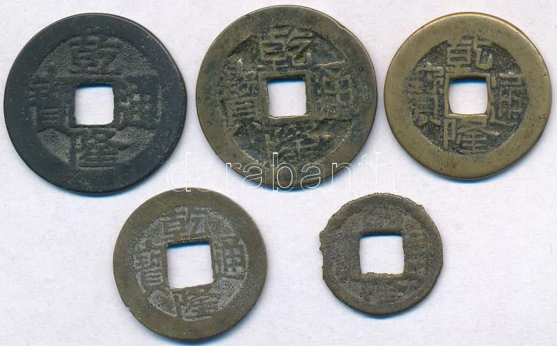 Kínai Császárság / Ching Dinasztia / Kao Tsung 1736-1795. 5db rézpénz ... https://www.darabanth.com/en/279-Online-auction/279.0/Numismatics/Worldwide-silver-and-metal-coins~300015/Kinai-Csaszarsag-Ching-Dinasztia-Kao-Tsung-1736-1795-5db-rezpenz-T3--Chinese-Empire-Ch~II1436577