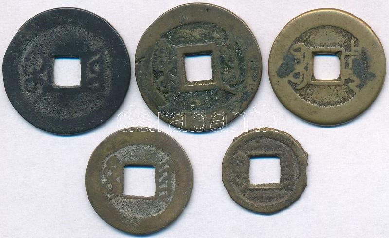Description: Kínai Császárság / Ching Dinasztia / Kao Tsung 1736-1795. 5db rézpénz T:3