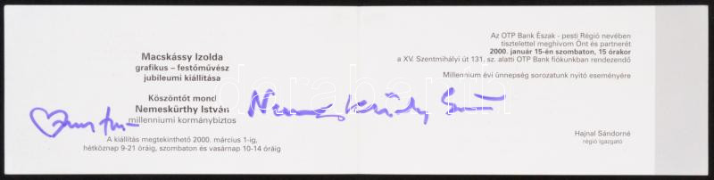 2000 Macskássy Izolda és Nemeskürty István aláírásai Macskássy-kiállítás meghívóján