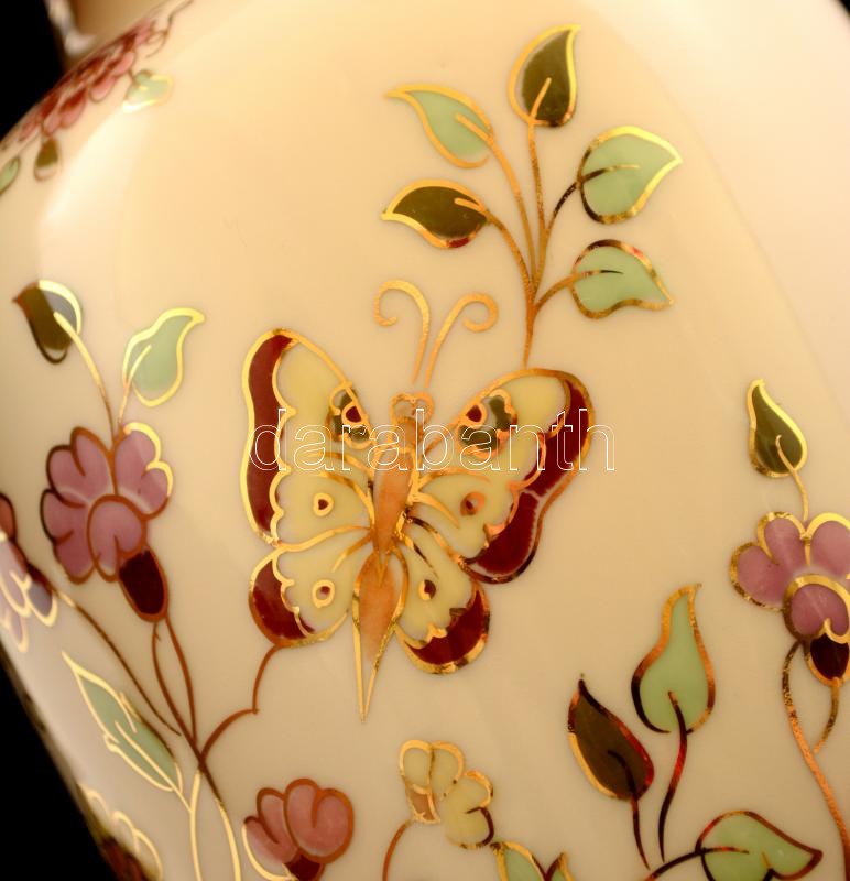 Zsolnay pillangó mintás váza, kézzel festett, jelzett, hibátlan, m:26 ...
