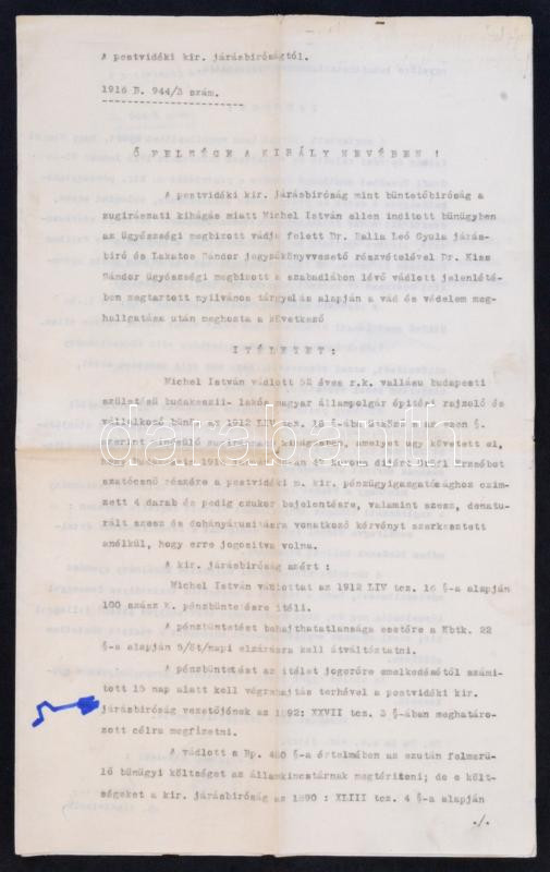 1916 A pesti királyi járásbíróság ítélete okirathamisítási ügyben