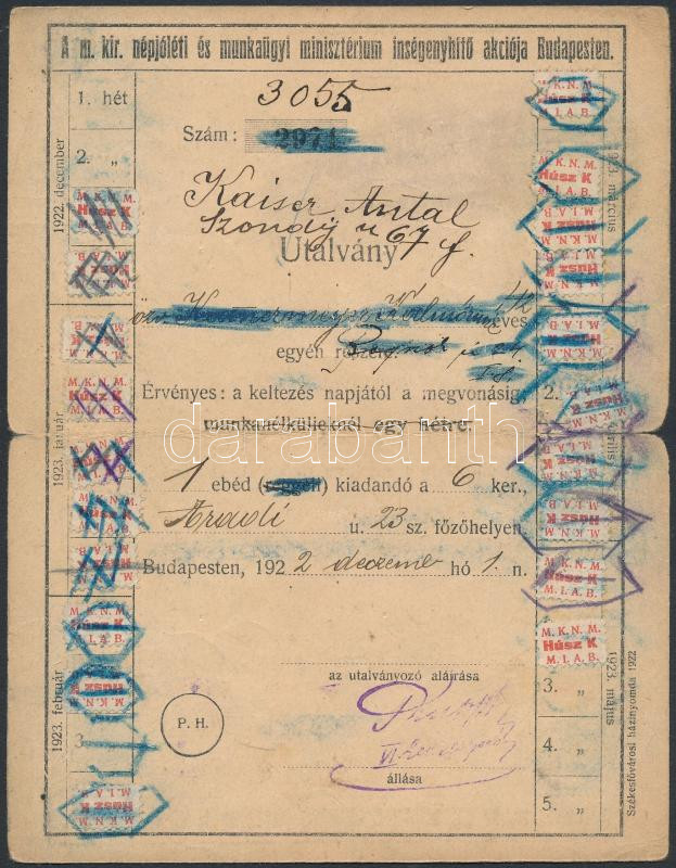 https://www.darabanth.com/en/279-Online-auction/279.0/Other-collectibles/Documents~16/1922-Budapest-ebedutalvany-a-m-kir-nepjoleti-es-munkaugyi-miniszterium-insegenyhito-~II1431195