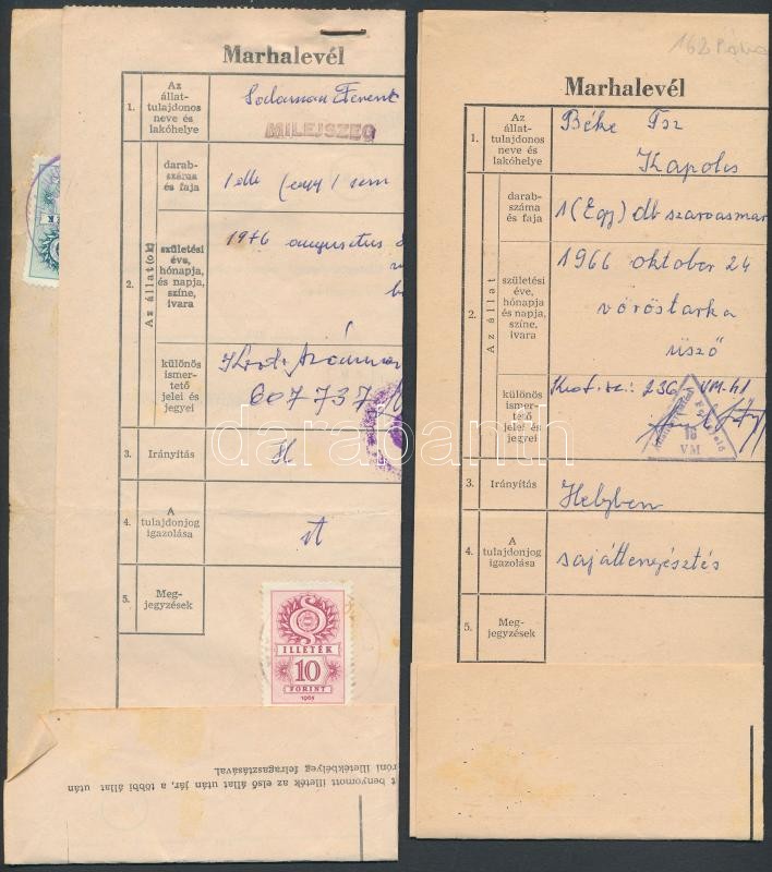 4 klf Marhalevél 10-30-30-70Ft illetékkel