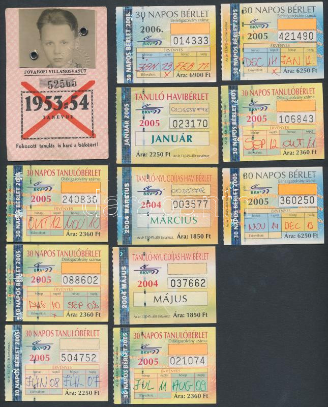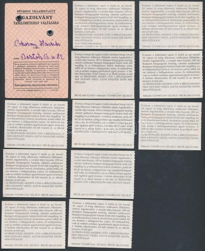 cca 1950-2004 12 db közlekedési bérletszelvény