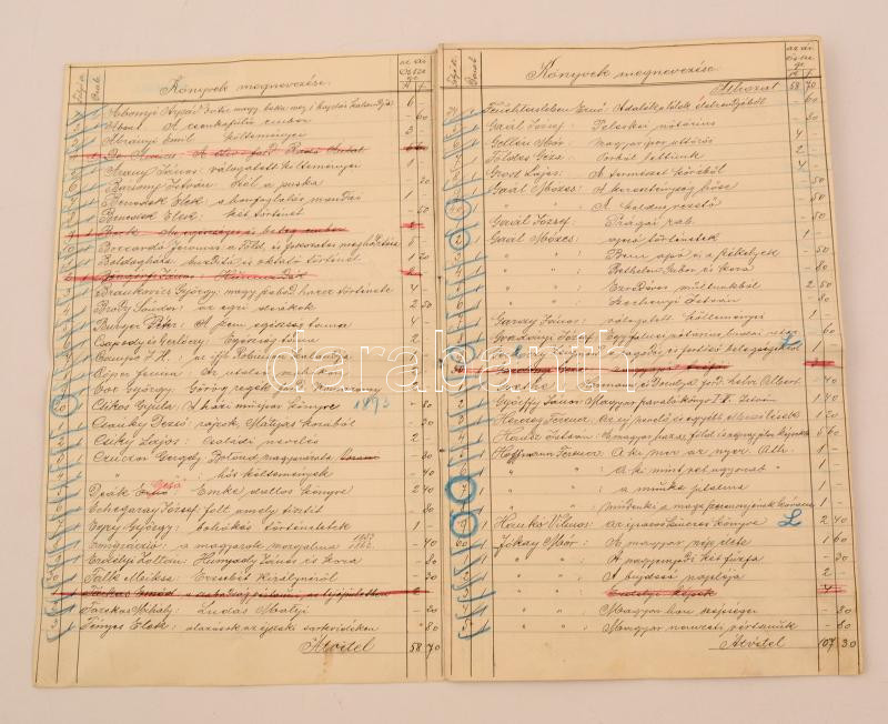 1908 A Múzeumok és Könyvtárak Országos Tanácsa által a Vakokat Gyámolító Országos Egyesület szombathelyi fiókja könyvtárának adományozott könyvek kéziratos jegyzéke, 8 p.