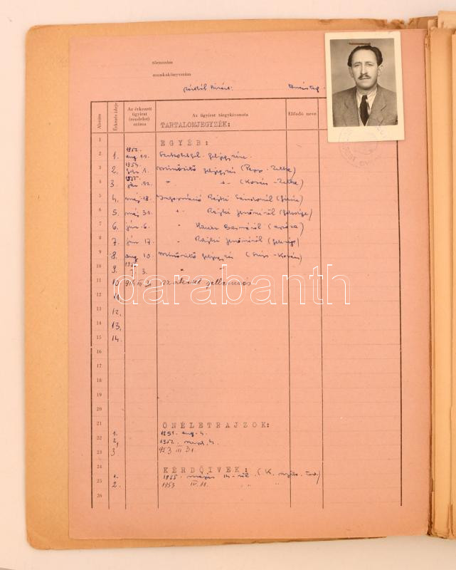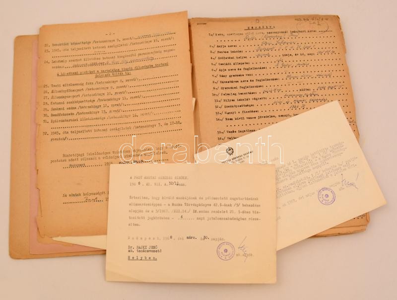 cca 1951-1955 Rajki Jenő (1905-?) bíró személyi anyaga: önéletrajzok, kérdőívek, különféle iratok, mappába rendezve