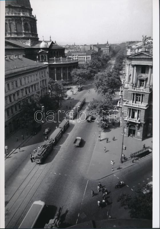 cca 1968 Budapest, Bajcsy-Zsilinszky úti villamosok, korabeli vintage negatívról készült mai nagyítás, 25x18 cm