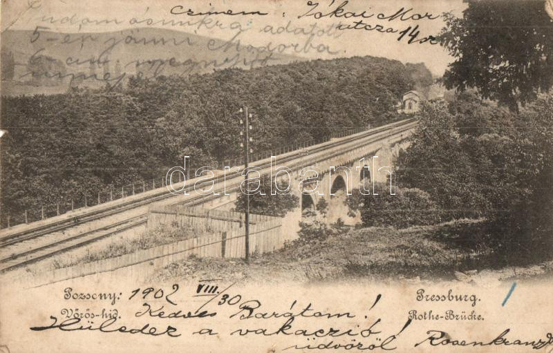 https://www.darabanth.com/en/279-Online-auction/279.0/Postcards/Slovakia~300025/Pozsony-Pressburg-Bratislava-Voros-vasuti-hid-Rothe-Brucke-railway-bridge-kis-szakadas~II1433800