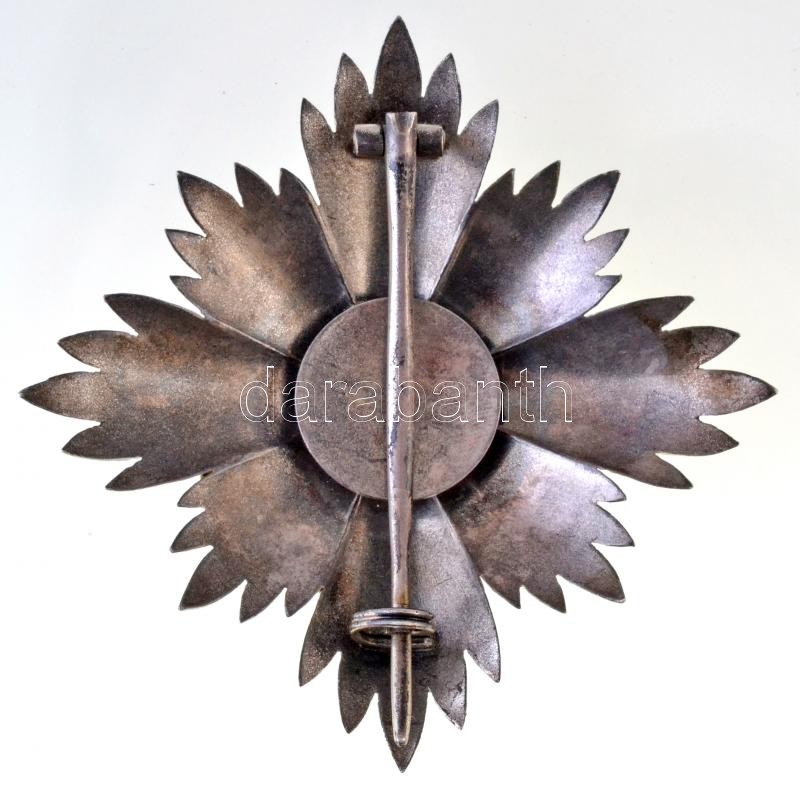 Description: 1946. "Magyar Köztársasági Érdemrend Középkeresztjének csillaga" zománcozott Ag csillag, hátoldalán függőleges tűvel (80mm) T:1-,2 /