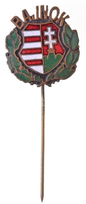 1947-1949. "Bajnok" zománcozott fém kitűző a Tildy-korszakból (17x19mm) T:1-,2 / Hungary 1947-1949. "Bajnok" enamelled metal pin from the Tildy-period (17x19mm) C:AU,XF