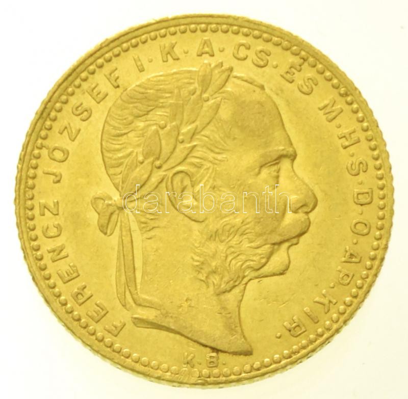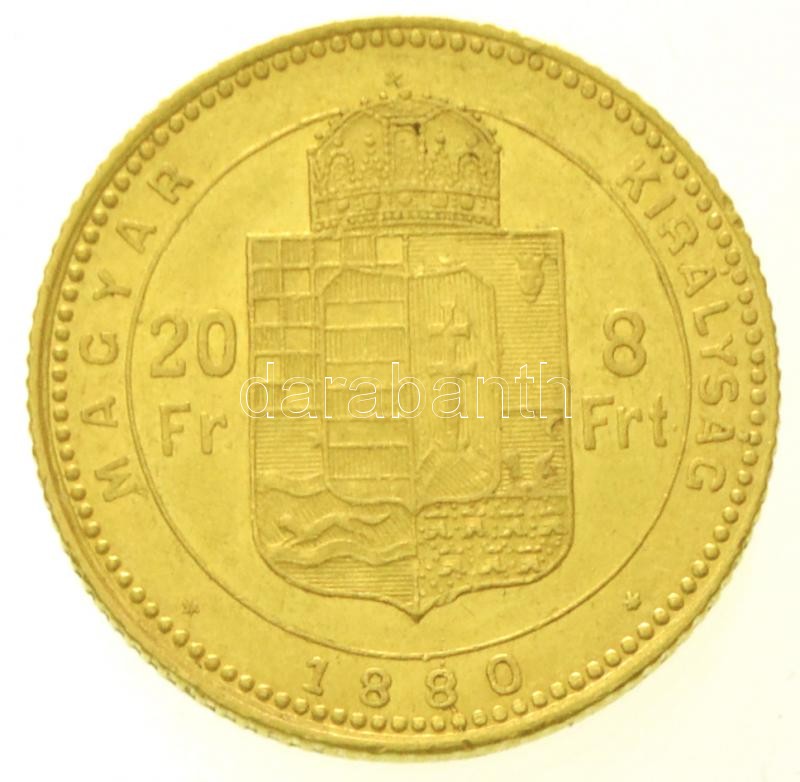 1880KB 8Ft/20Fr Au "Ferenc József / Középcímer" Körmöcbánya ... https://www.darabanth.com/en/28-Major-auction/28.1/Numismatics/Gold-coins-and-commemorative-medallions~11290/1880KB-8Ft20Fr-Au-Ferenc-Jozsef-Kozepcimer-Kormocbanya-6-44g0900-T2-kis-ph-Hunga~II1685226