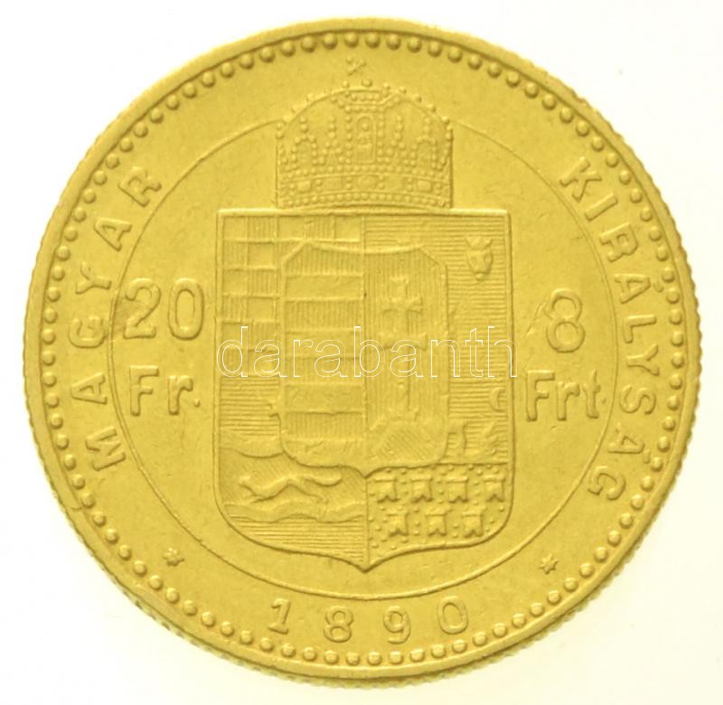 https://www.darabanth.com/en/28-Major-auction/28.1/Numismatics/Gold-coins-and-commemorative-medallions~11290/1890KB-8Ft20Fr-Au-Ferenc-Jozsef-Kozepcimer-Kormocbanya-6-34g0900-T2-2--Hungary-18~II1685273
