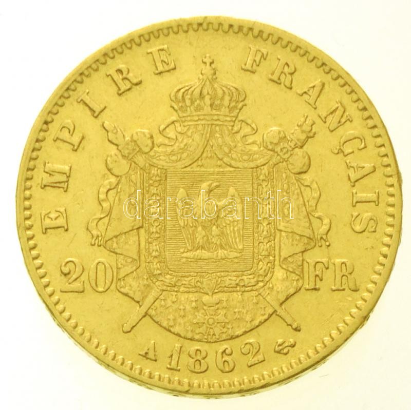 Franciaország / Második Császárság 1862A 20Fr Au "III. Napóleon&q... https://www.darabanth.com/en/28-Major-auction/28.1/Numismatics/Gold-coins-and-commemorative-medallions~11290/Franciaorszag-Masodik-Csaszarsag-1862A-20Fr-Au-III-Napoleon-6-45g0900-T2-2-kis-ph-~II1685086