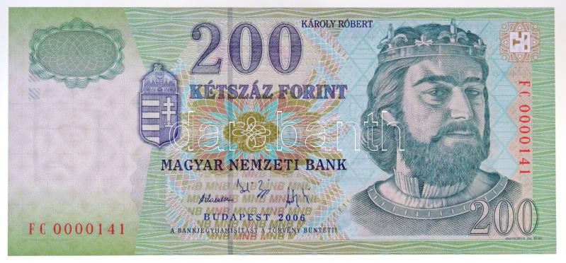 2006. 200Ft alacsony "FC 0000141" sorszámmal T:I / Hungary 2006. 200 Forint with low "FC 0000141" serial number C:UNC