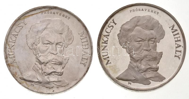 1976. 200Ft Ag "Munkácsy Mihály" jelzett próbaveret tervezet, Munkácsy portré (2xklf) T:BU,1(PP) kis patina / Hungary 1976. 200 Forint Ag "Mihály Munkácsy" "PRÓBAVERET" marked trial strike plan, portrait of Munkácsy (2xdiff) C:BU,1(PP) small patina