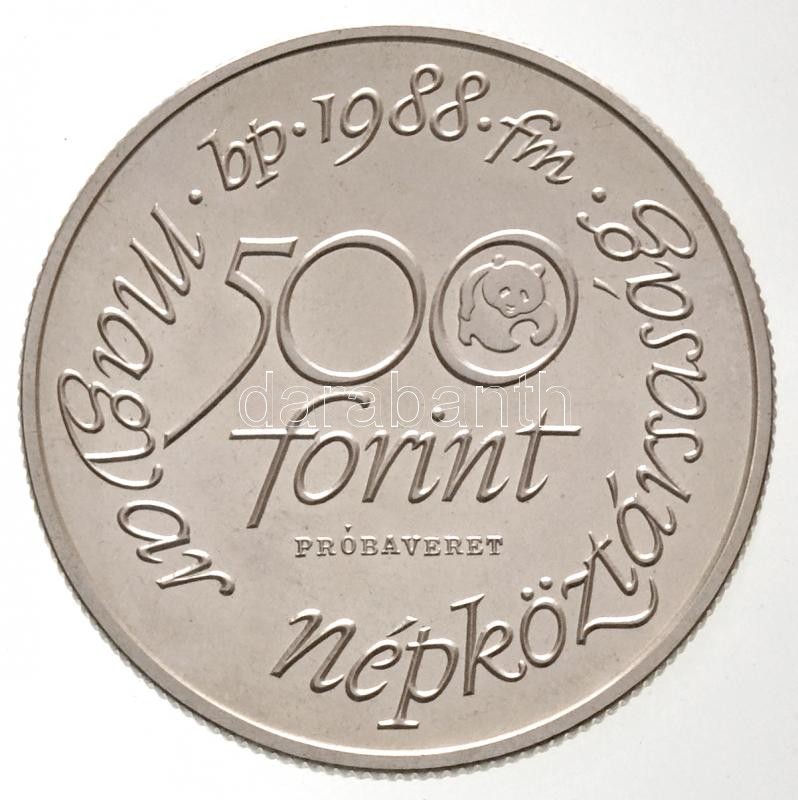 https://www.darabanth.com/en/28-Major-auction/28.1/Numismatics/Hungarian-coins-and-coins-with-Hungarian-mint-marks~11655/1988-500Ft-Ag-Vilag-vadvedelmi-alap-PROBAVERET-jelzessel-TBU-Hungary-1988-500-Forint-Ag-~II1674384