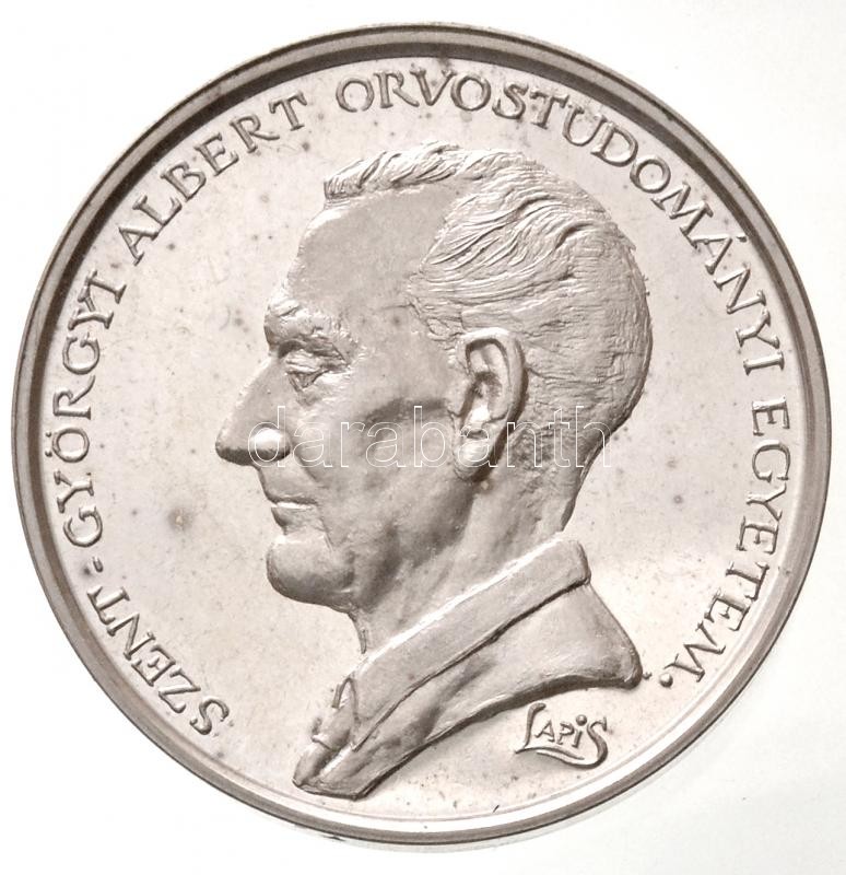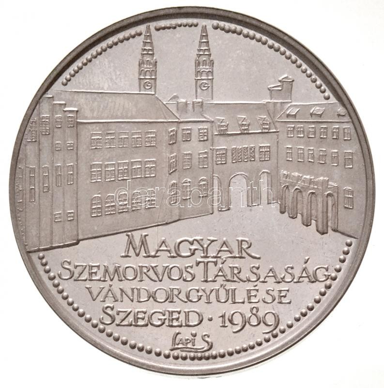 Lapis András (1942- ) 1989. "Szent-Györgyi Albert Orvostudományi Egyetem / Magyar Szemorvos Társaság Vándorgyűlése - Szeged 1989" piefort Ag emlékérem, peremen "SZG" jelzéssel (71,56g/0.835/42,5mm) T:1(PP) / Hungary 1989. "Szent-Györgyi Albert Orvostudományi Egyetem / Hungarian Eye-Specialist Doctors Association's Session - Szeged 1989" piefort Ag commemorative medallion with "SZG" mark on edge. Sign.: András Lapis (71,56g/0.835/42,5mm) C:UNC(PP)