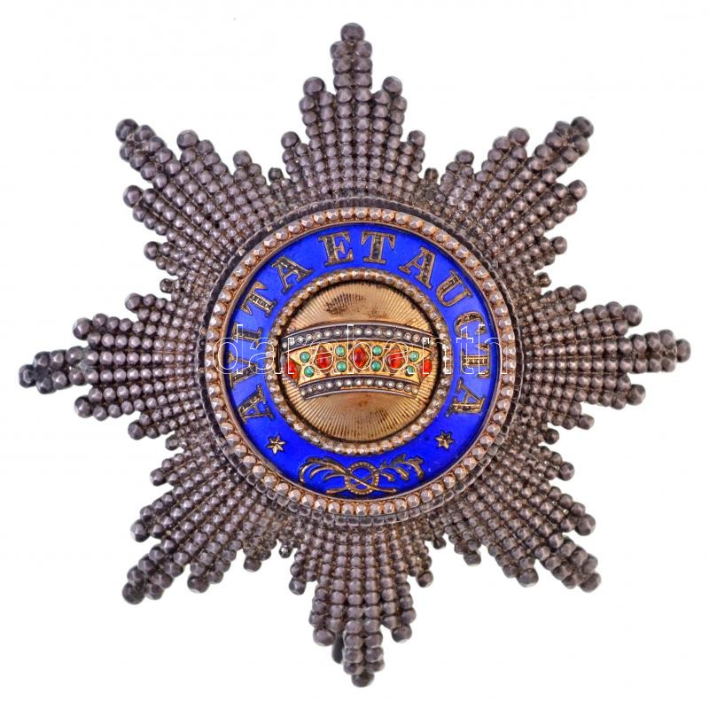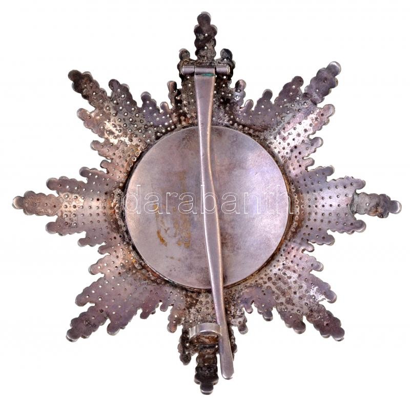 1922- "Vaskorona Rend I. osztályának csillaga" zománcozott, jelzetlen Ag csillag, valószínűleg magán megrendelésre készült viseleti példány, a gyártó Rothe, régi javítás nyomaival (~85mm) T:2 / Hungary 1922- "Order of the Iron Crown, Star of the 1st Class" enamelled, unmarked Ag star, probably made for private order, the manufacturer is Rothe, with marks of old repair (~85mm) C:XF NMK 80.