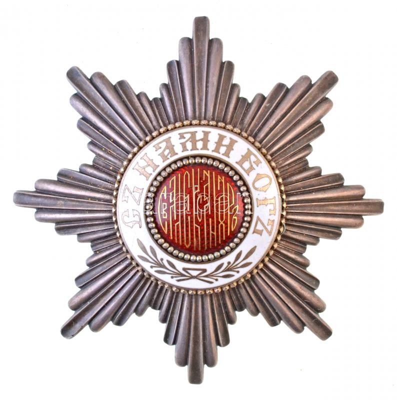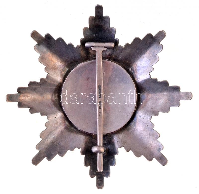 Bulgária ~1920. "Szent Sándor-rend II. osztályának csillaga" zománcozott és jelzett Ag csillag, függőleges tűvel, "C. F. ROTHE" és "WIEN" gyártói beütésekkel a tűn, valamint ezüstjelzés a csillag hátoldalán (78mm) T:1-,2 / Bulgaria ~1920. "Order of St. Alexander, star of the 2nd class" enamelled and hallmarked Ag star with vertical pin, "C.F. ROTHE" and "WIEN" makers mark on pin, and silver hallmark on reverse of the star (78mm) C:AU,XF