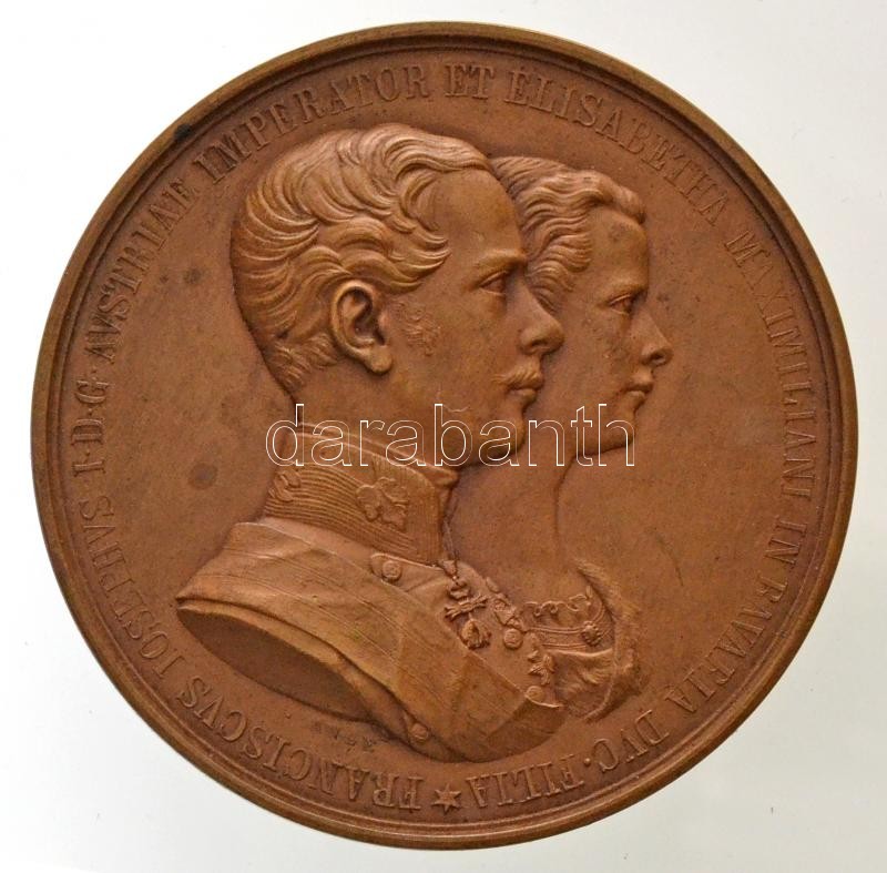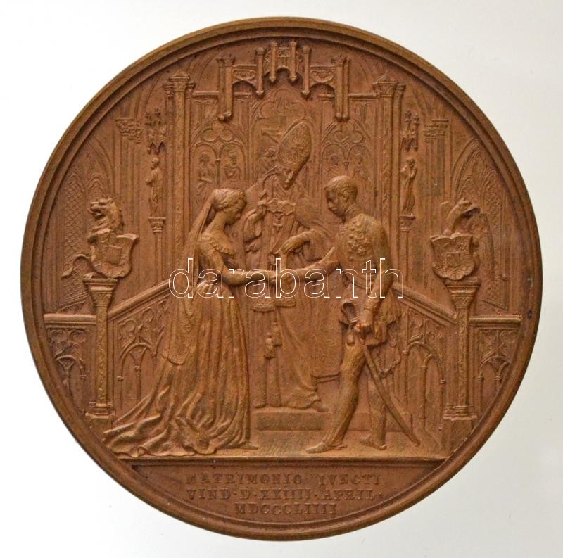 Ausztria 1854. Ferenc József és Erzsébet Királyné jobbra néző portréja / Házasságkötés a bécsi udvari kápolnában Br emlékérem "FRANCISCUS IOSEPHVS I D G AVSTRIAE IMPERATOR ET ELISABETHA MAXIMILIAN IN BAVARIA DVC FILIA / MATRIMONIO IVNCTI VIND D XXIIII APRIL MDCCCLIIII". Szign.: Konrad Lange (69,84g/56mm) T:1-,2 apró ü. / Austria 1854. Franz Joseph and Queen Elisabeth burst to right / Wedding Ceremony in the Royal Chapel at Vienna, Br commemorative medallion. Sign.: Konrad Lange (69,84g/56mm) C:AU,XF tiny ding