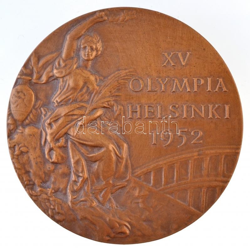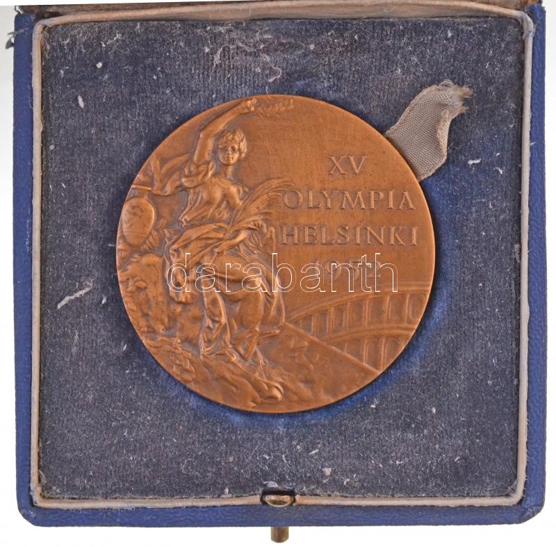 Finnország 1952. "Helsinki XV. Nyári Olimpia" olimpiai bronzérem, Br emlékérem, peremén fémjel, eredeti adományozói tokban (60,19g/51mm) T:1 / Finland 1952. "XV. Olympia Helsinki" Olympic Bronze Medal, Br medallion, hallmarked on edge, in original case (60,19g/51mm) C:UNC