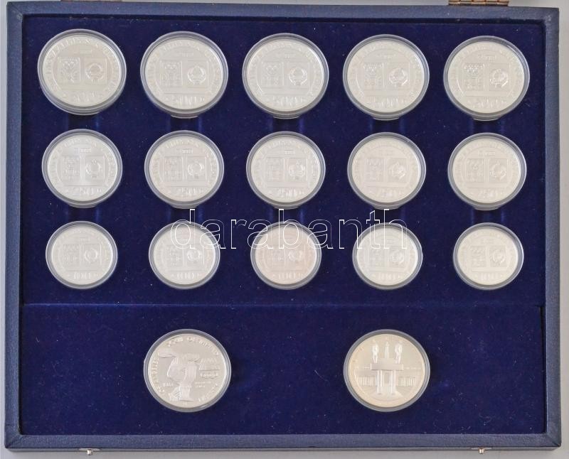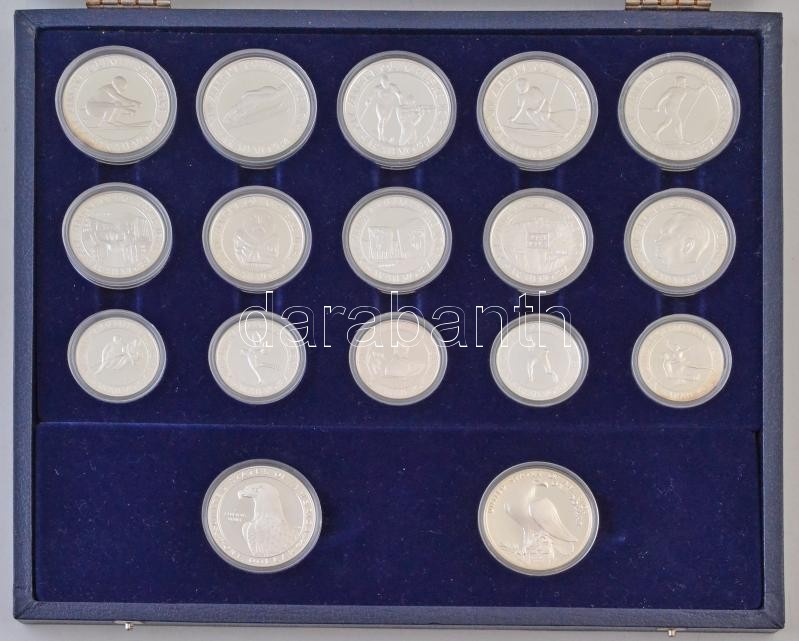 Amerikai Egyesült Államok 1983-1984. 1$ Ag "Los Angeles-i Olimpia" (2xklf) + Jugoszlávia 1982-1984. 100D Ag "Szarajevói Olimpia" (5xklf) + 250D Ag "Szarajevói Olimpia" (5xklf) + 500D Ag "Szarajevói Olimpia" (5xklf) Minden érme együtt egy "Olimpische Spiele 1984" gyűjtői tokban T:PP patina / USA 1983-1984. 1 Dollar Ag "Los Angeles Olympics" (2xdiff) + Yugoslavia 1982-1984. 100 Dinara Ag "Sarajevo Olympics" (5xdiff) + 250 Dinara Ag "Sarajevo Olympics" (5xdiff) + 500 Dinara Ag "Sarajevo Olympics" (5xdiff) All coins are in the same collectors case "Olimpische Spiele 1984" C:PP patina Krause KM#209, KM#210, KM#90, KM#98, KM#99, KM#105, KM#106, KM#91, KM#100, KM#101, KM#107, KM#108, KM#92, KM#102, KM#103, KM#109, KM#110