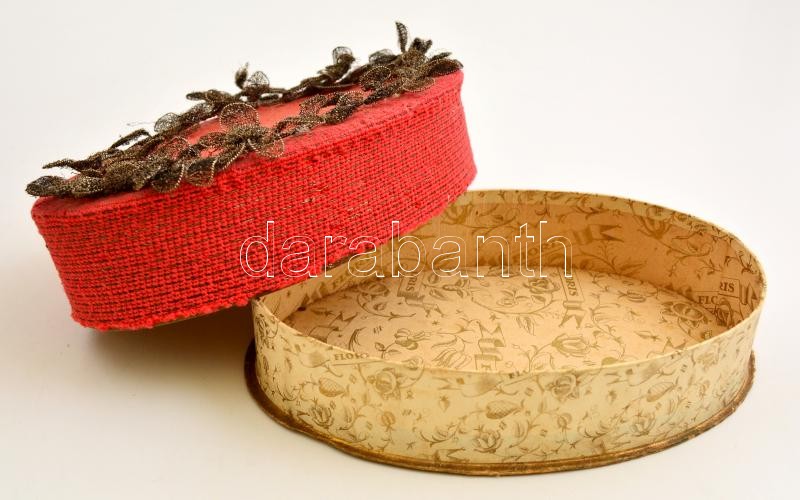 Description: cca 1920 Floris bonbonos doboz Kozma Lajos (1884-1948) grafikus terve alapján, komplett doboz tetején fém díszítéssel / cca 1920 Lajos Kozma designed Floris bonbon box 15x20x7cm