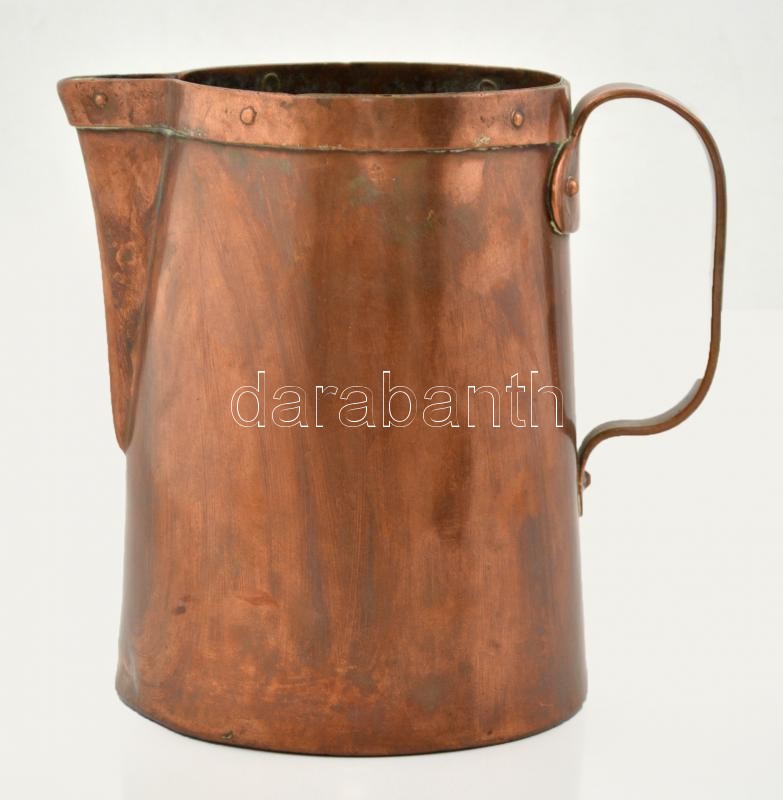 cca 1850 réz kancsó, jelzett "Cs.K. Sz. Vörös József Pesten", alján kis helyen javított, m:19,5 cm, kb 2 liter