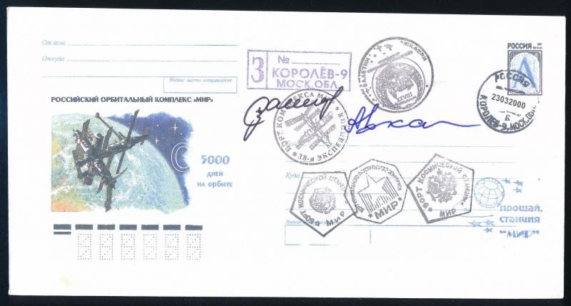 Signatures of Sergey Zalyotin (1962- ) and Aleksandr Kaleri (1956- ) Russian astronauts on envelope
