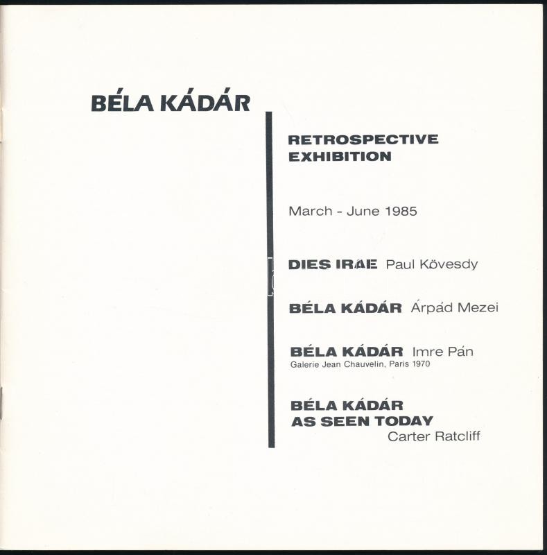 Béla Kádár. 1877-1956. Retrospective Exhibition. 1985. márc.- jún. Kiállítási katalógus. New York, 1985, Paul Kövesdy Gallery. Kiadói papírkötés, kissé sérült gerinccel, angol nyelven. Paul Kövesdy, Mezei Árpád, Pán Imre, Carter Ratcliff írásaival, fekete-fehér és színes képekkel illusztrálva. Kádár Béla egyetlen New York-i kiállításának katalógusa. Paul Kövesdy (1923-1917) nemzetközi műkereskedő, művészeti író, elévülhetetlen érdemeket szerzett a magyar avantgárd festők nyugaton való elismertetésében. Ritka. / Paperbinding, with little bit damaged spine, in English. Rare.