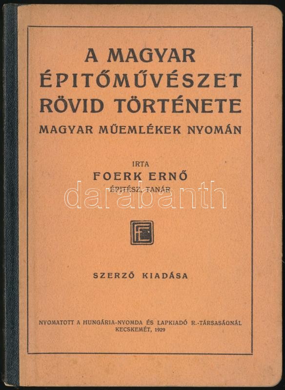 Foerk Ernő: A magyar építőművészet rövid története. Magyar műemlékek n... https://www.darabanth.com/en/28-Major-auction/28.1/Other-collectibles/Books-Architecture-Art~11199/Foerk-Erno-A-magyar-epitomuveszet-rovid-tortenete-Magyar-muemlekek-nyomaban--KecskemC3~II1669836