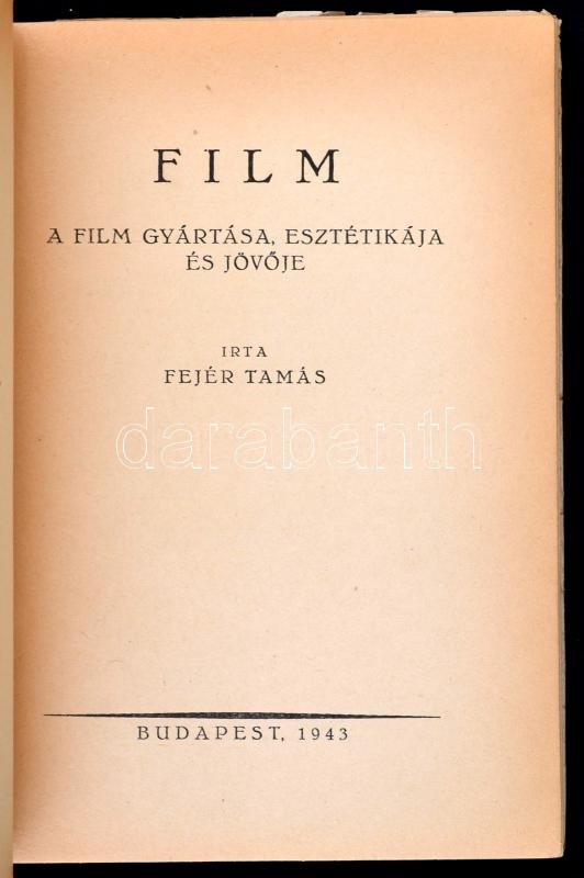Fejér Tamás: Film. A film gyártása, esztétikája, és jövője. Bp., 1943, Otthon-nyomda. Kiadói papírkötés, kissé szakadt borítóval, javított gerinccel és kötéssel.