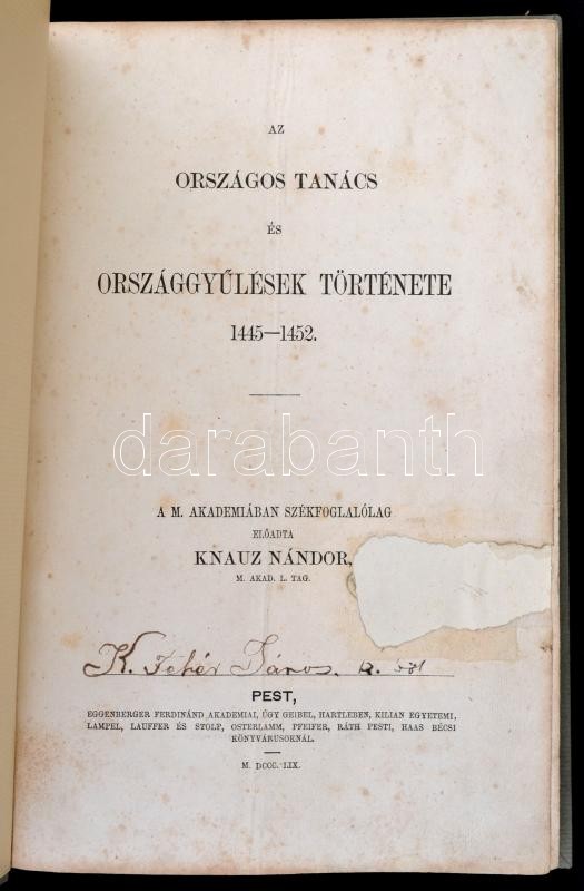 Knauz Nándor - Az országos tanács és országgyűlések története 1445-145... https://www.darabanth.com/en/28-Major-auction/28.1/Other-collectibles/Books-History~11238/Knauz-Nandor-Az-orszagos-tanacs-es-orszaggyulesek-tortenete-1445-1452--Pest-1859-Egge~II1668772