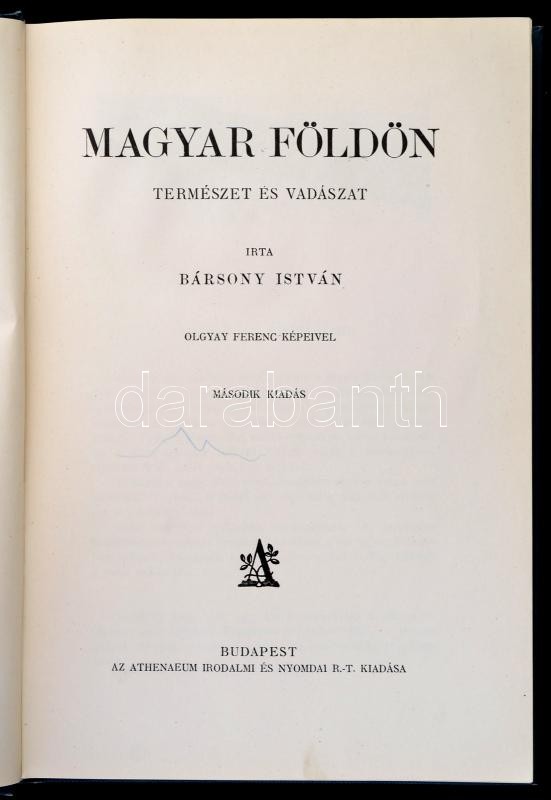 Bársony István: Magyar földön. Természet és vadászat. Olgyay Ferenc ké... https://www.darabanth.com/en/28-Major-auction/28.1/Other-collectibles/Books-Hunting~11201/Barsony-Istvan-Magyar-foldon-Termeszet-es-vadaszat-Olgyay-Ferenc-kepeivel-Bp-en-Ath~II1635549