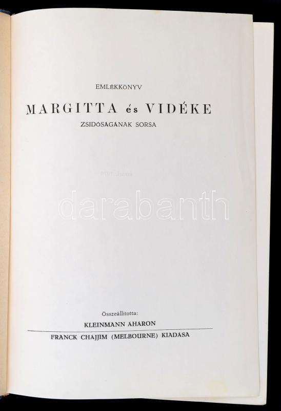 Emlékkönyv. Margitta és vidéke zsidóságának sorsa. Összeáll.: Kleinmann Áháron. Jeruzsálem, 1979, Weiss Nyomda. Kissé kopott kartonált papírkötésben, jó állapotban.