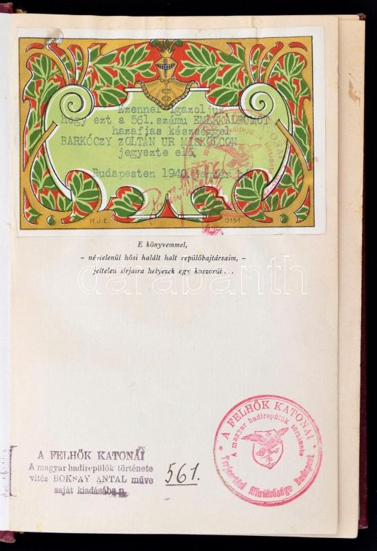 Boksay Antal, Vitéz: A felhők katonái A magyar hadirepülők története.... https://www.darabanth.com/en/28-Major-auction/28.1/Other-collectibles/Books-Military~11197/Boksay-Antal-Vitez-A-felhok-katonai-A-magyar-hadirepulok-tortenete--Budapest-1938-A-s~II1675428