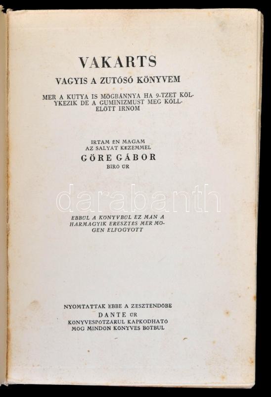 Description: Gárdonyi Géza: Göre Gábor: Vakarts vagyis a zutósó könyvem. Mühlbeck Károly rajzaival. Bp., é.n., Dante, (Hornyánszky Viktor Rt.-ny.), Harmadik eresztés. Kiadói illusztrált papírkötés.