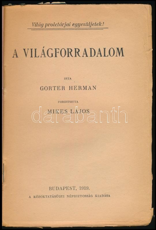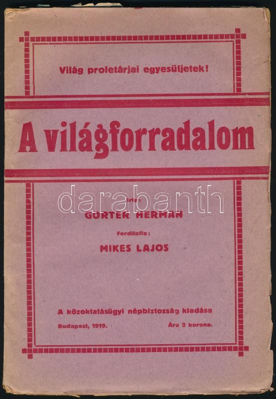 https://www.darabanth.com/en/28-Major-auction/28.1/Other-collectibles/Books-Other-rarities~11208/Gorter-Hermann-A-vilagforradalom-Forditotta-Mikes-Lajos-Bp-1919-Kozoktatasi-Nepbiztossa~II1614615