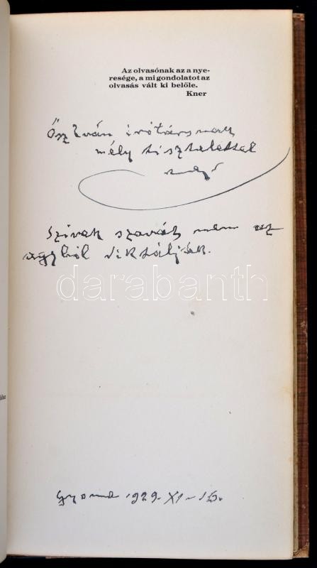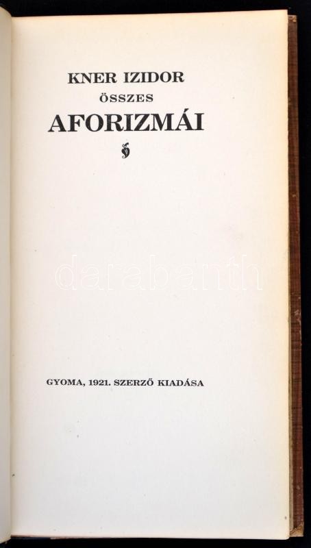 Gyoma, 1921. (Kner ny.) 206 l. 1 sztl. ... https://www.darabanth.com/en/28-Major-auction/28.1/Other-collectibles/Books-Other-rarities~11208/Kner-Izidor-osszes-aforizmai--Gyoma-1921-Kner-ny-206-l-1-sztl-lev-192-mm-Masodik-kiada~II1644759
