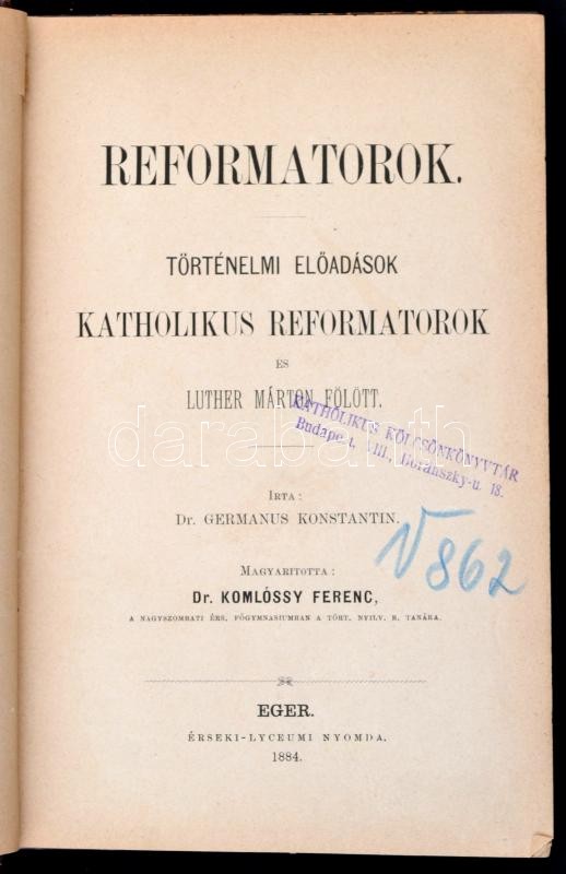 Dr. Germanus Konstantin: Reformatorok. Történelmi előadások katholikus... https://www.darabanth.com/en/28-Major-auction/28.1/Other-collectibles/Books-Religion~11206/Dr-Germanus-Konstantin-Reformatorok-Tortenelmi-eloadasok-katholikus-reformatorok-es-Luther-M~II1680087