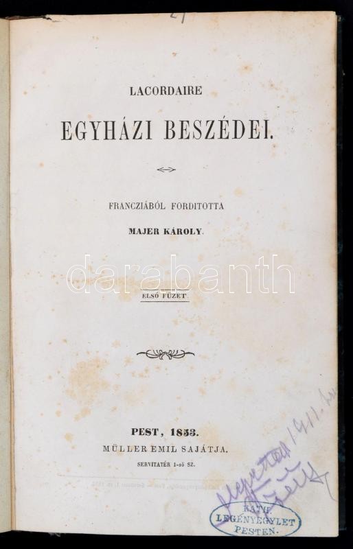 https://www.darabanth.com/en/28-Major-auction/28.1/Other-collectibles/Books-Religion~11206/Henri-Dominique-Lacordaire-1802-1861-Lacordaire-egyhazi-beszedei-Elso-fuzet-Forditotta-~II1640357