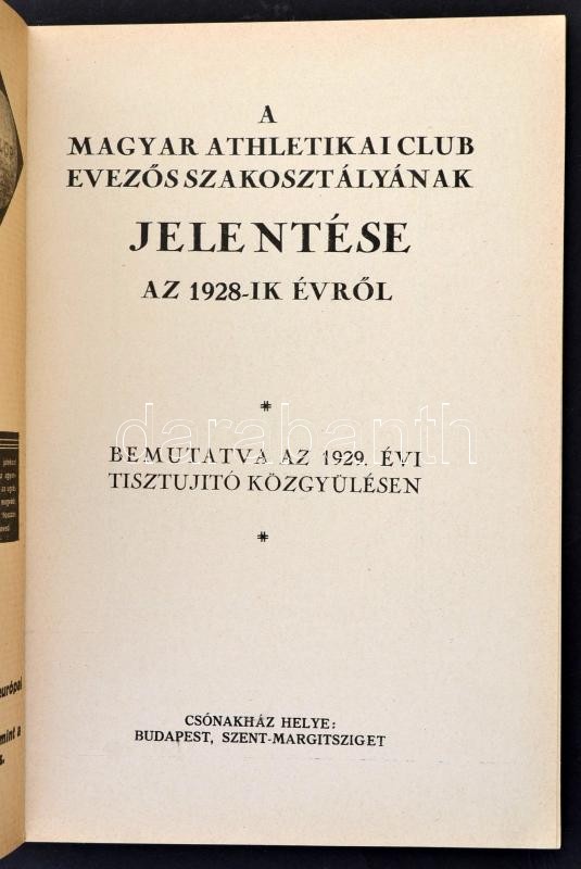 1922-1943 a Magyar Atlétikai Club Evezős Szakosztály évi jelentése: 19... https://www.darabanth.com/en/28-Major-auction/28.1/Other-collectibles/Books-Sports-Chess-Alpinism~11194/1922-1943-a-Magyar-Atletikai-Club-Evezos-Szakosztaly-evi-jelentese-1922-1925-1928-1933-1935-~II1661656
