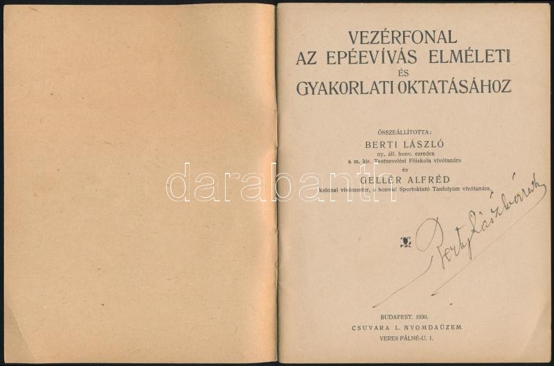 Berti László-Gellér Alfréd: Vezérfonal az epéevívás elméleti és gyakor... https://www.darabanth.com/en/28-Major-auction/28.1/Other-collectibles/Books-Sports-Chess-Alpinism~11194/Berti-Laszlo-Geller-Alfred-Vezerfonal-az-epeevivas-elmeleti-es-gyakorlati-oktatasahoz-~II1669108