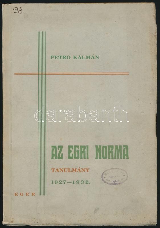 https://www.darabanth.com/en/28-Major-auction/28.1/Other-collectibles/Books-Travelling-Local-History~11237/Petro-Kalman-Az-Egri-Norma-1927-1932-Eger-1932-Kapisztran-Nyomda-Papirkotesben-jo-alla~II1650824