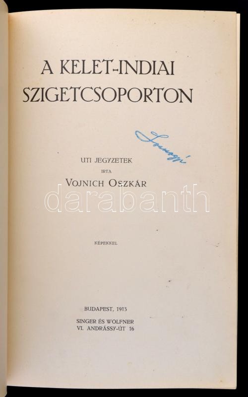 Bp., 1... https://www.darabanth.com/en/28-Major-auction/28.1/Other-collectibles/Books-Travelling-Local-History~11237/Vojnich-Oszkar-A-Kelet-indiai-szigetcsoporton-Uti-jegyzetek--Bp-1913-Singer-es-Wolfner-1-ki~II1669728
