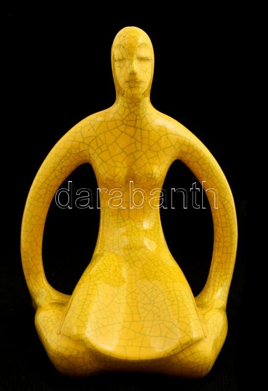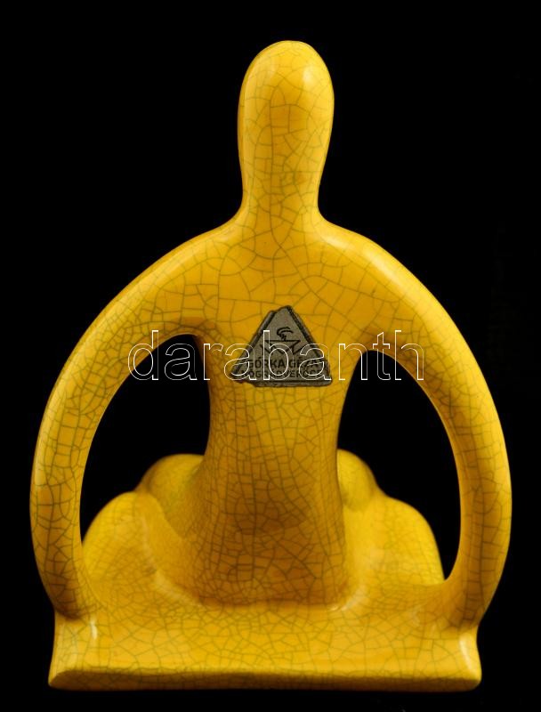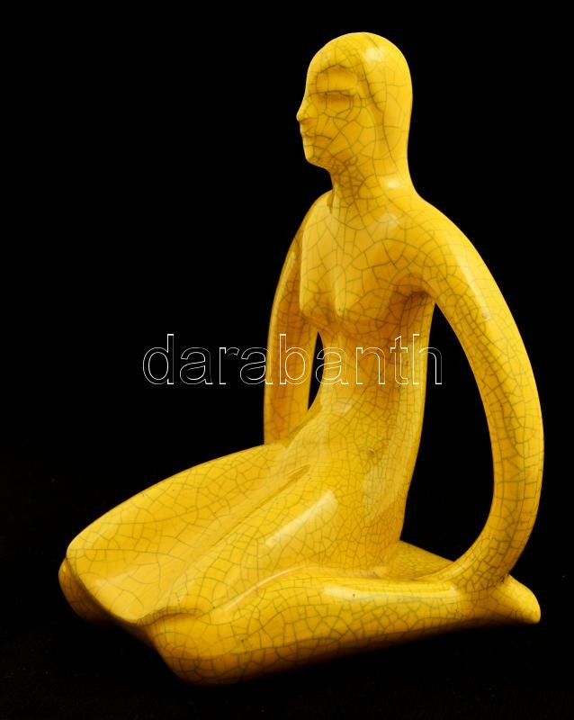 Gorka Géza (1895-1971): Art deco ülő női figura könyvtámasz. Repesztett mázas kerámia, jelzett (Nográdverőce) kopás nyomokkal, m:16,5 cm, h:11 cm