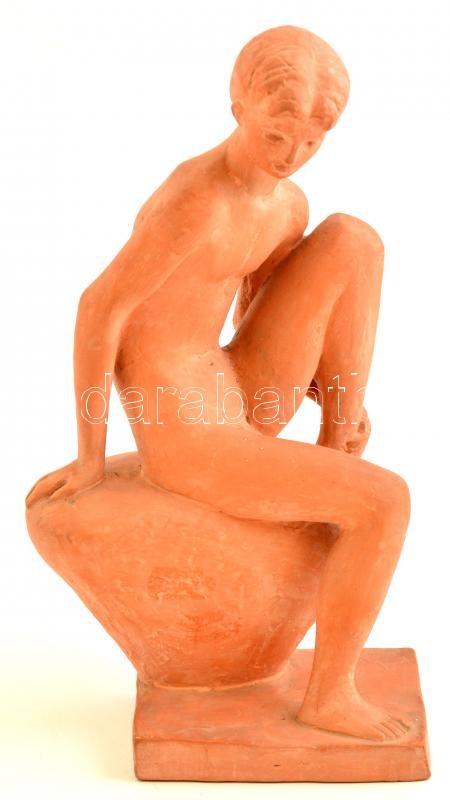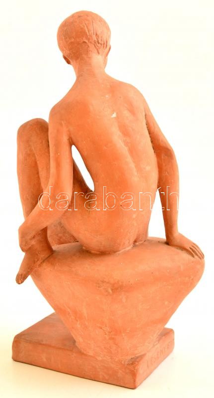 Lesenyei Márta (1930-): Ülő fiú akt. Terrakotta, jelzett, hibátlan, m:...